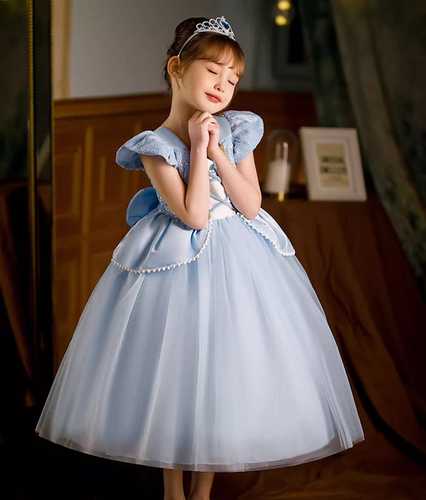 Robe de princesse à paillettes bleues pour enfants