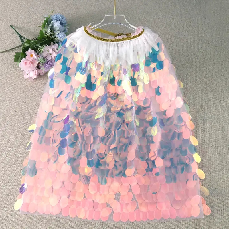 Dress your child as a magical mermaid with our Mermaid Sequin Scale Cape for kids! Made with shimmering sequins and a comfortable design, this cape will transport them to an underwater world. Perfect for imaginative play and costume parties.